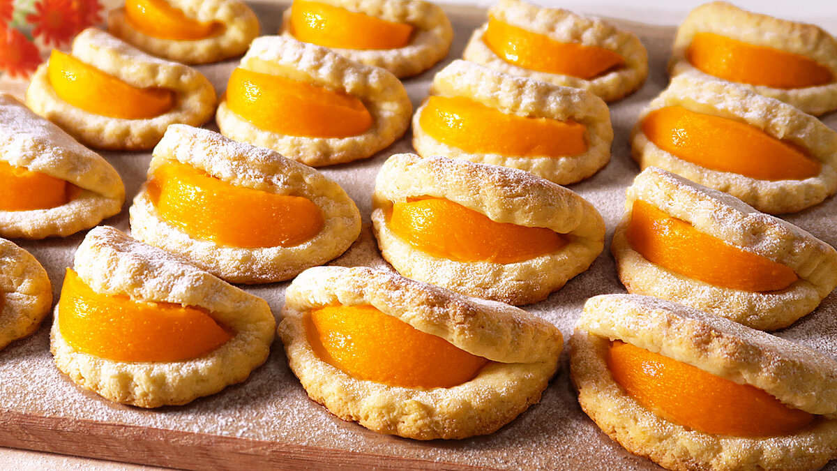 Компактная порция начинки из персиков в сиропе добавляет сочности, а расход ингредиентов остаётся умеренным. За одну партию получается примерно 20 печений — достаточно, чтобы радовать домочадцев и гостей.