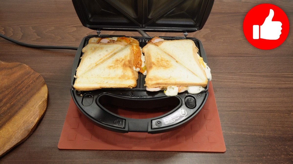 Затем бутерброды помещаются в заранее разогретую минипекарню, где важно разместить их сыром вниз. Готовятся они всего 3 минуты, и наслаждаться горячими бутербродами можно сразу после приготовления. После окончания времени приготовления, их нужно аккуратно разрезать на порции.
