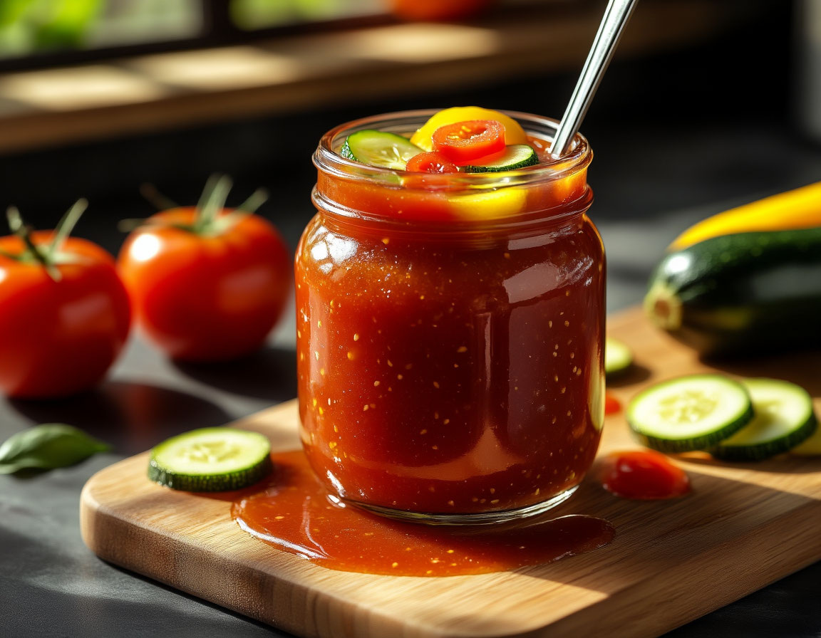 Густой овощной соус — универсальное решение для зимнего хранения. Он прекрасно сочетается как с пастой, так и с мясом, рыбой или кашами. Такое блюдо состоит исключительно из натуральных ингредиентов: томатов, сладкого перца, кабачков, лука и чеснока. Приготовление займет всего немного времени, а зимние запасы порадуют разнообразием вкуса в холодные дни.
