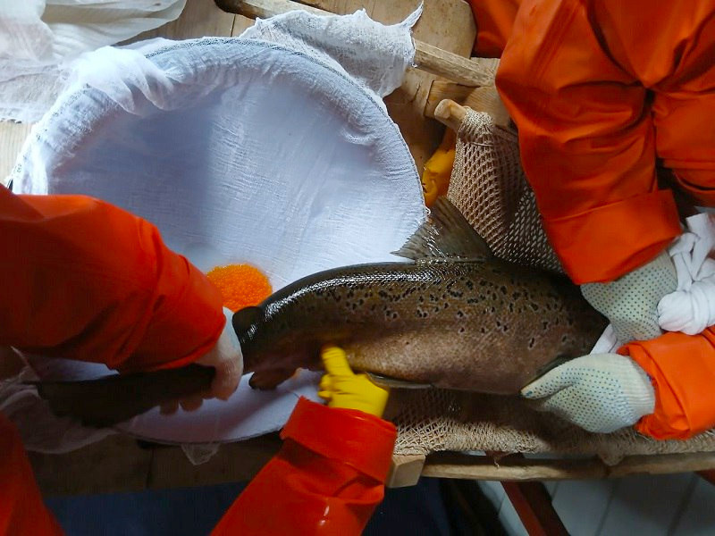 В рамках текущей бонитировки специалисты отбирают здоровых рыб без кожных дефектов и с нормальным весом, готовых к размножению. Средний вес каждого взрослого экземпляра составляет около 900 граммов.