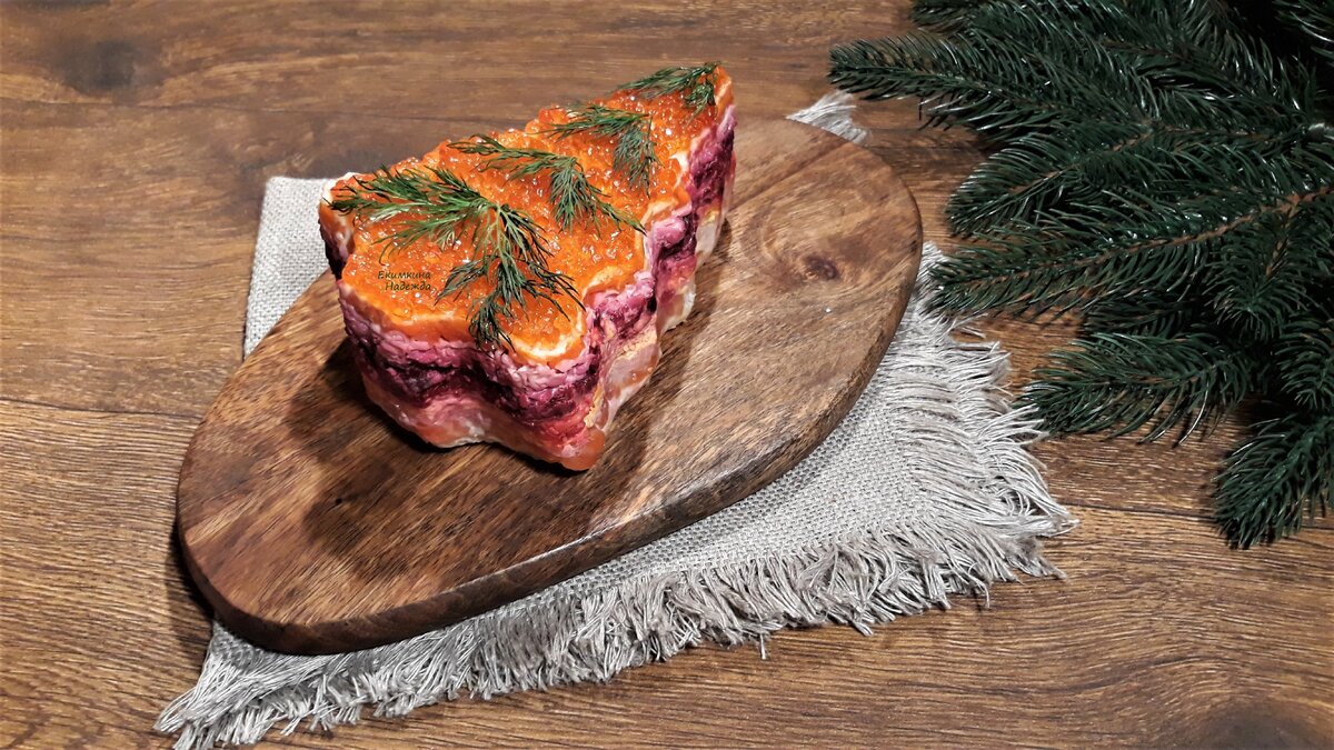 «Царская шуба» готова к подаче! Этот салат точно удивит и взрослых, и детей своим прекрасным вкусом и ярким внешним видом. Праздничный стол будет освещен сиянием кулинарного шедевра. С новым годом!