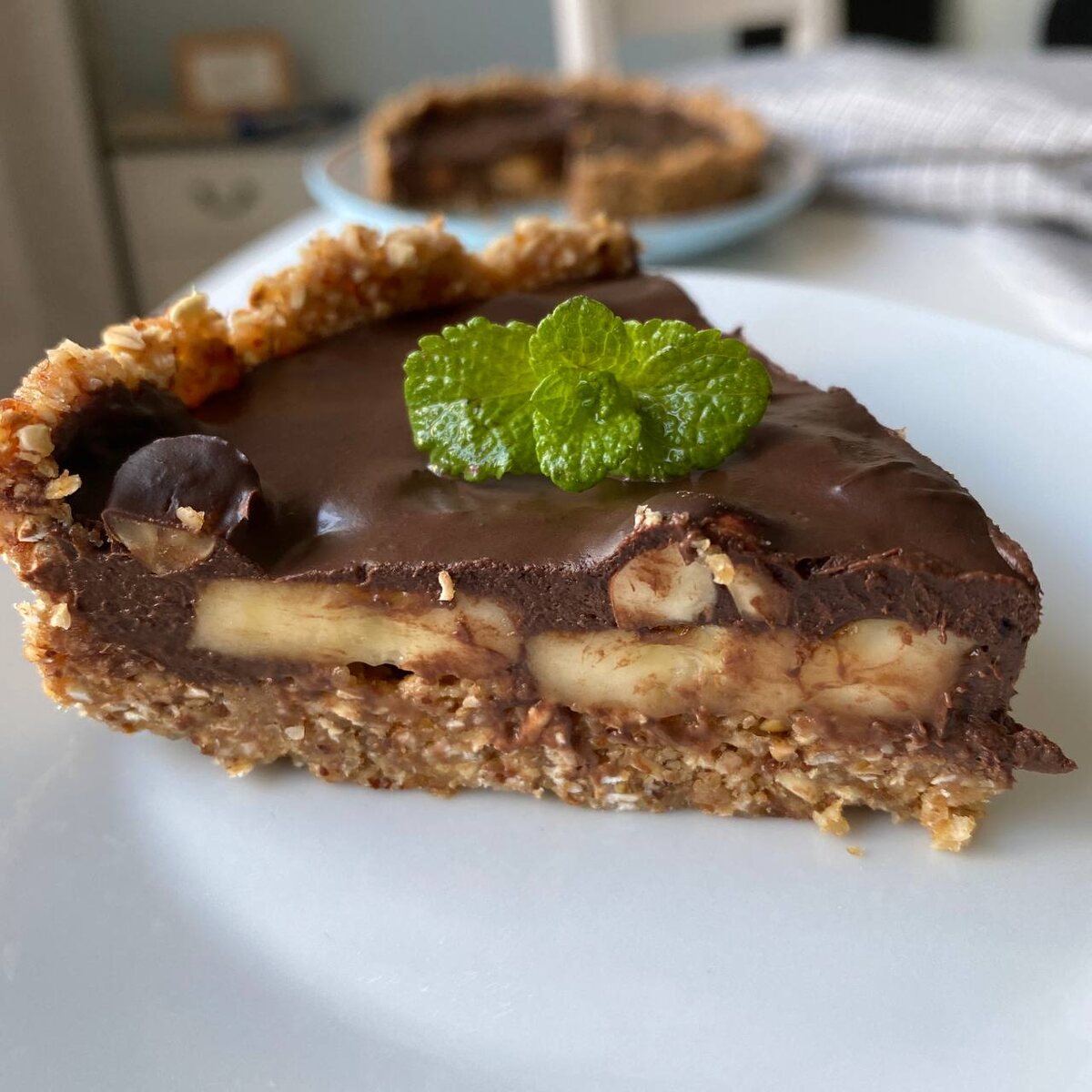 Шаг 4: Вылейте шоколадную начинку на подготовленную основу с бананом и поместите в холодильник минимум на два часа для застывания.