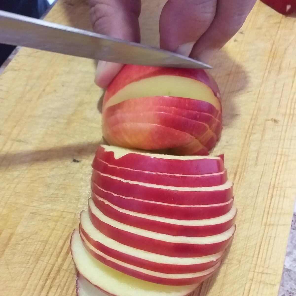 Достать тесто из упаковки и накрыть его полотенцем, чтобы оно не заветрилось, а затем разморозить. Яблоки тщательно промыть, обсушить и разрезать вдоль пополам, удаляя семена и сердцевину. Каждую половинку следует нарезать на тонкие дольки.