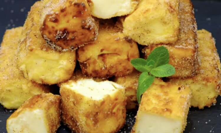 Кроме того, понадобится мука для панировки и растительное масло для жарки. Для присыпки готового десерта достаточно смешать сахарную пудру с корицей. Белки двух яиц также вступят в обладательную силу.