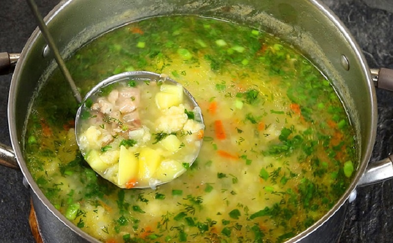 Добавив картофель в бульон, вы можете также использовать свежие овощи, такие как горошек и брокколи, чтобы приготовить легкий и разнообразный суп. Когда картофель почти готов, шарики из теста аккуратно закладываются в кипящий бульон, увеличиваясь в размерах.