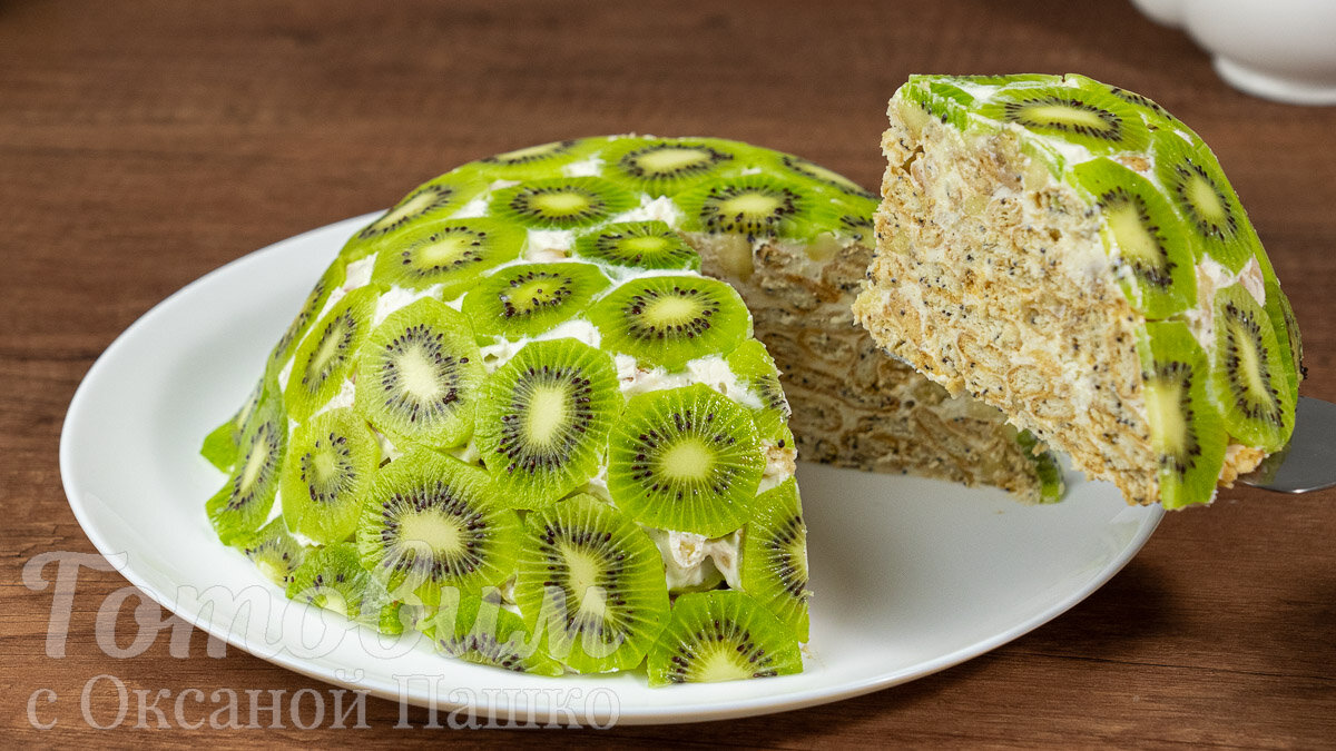 Этот торт с киви и крекером подойдёт для всех случаев жизни, в нём прекрасно сочетаются нежность крема и хрустящие крекеры, а замена фруктов сделает десерт ещё разнообразнее.