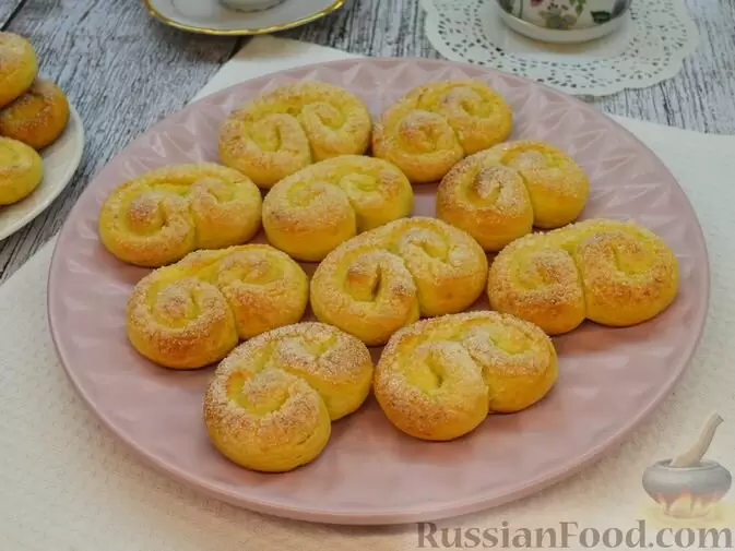 - Ингредиенты для пирога: сливочное масло, яйца, сахар, мука, лимон, разрыхлитель, соль, творог, сметана, крахмал, ванильный сахар, сахарная пудра.