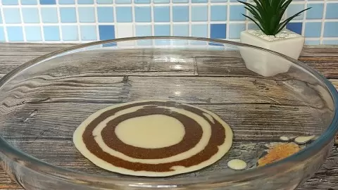 Тесто может показаться жидким, это нормально. Разделите его на две части: в одну добавьте какао, в другую - муку, и хорошо перемешайте.