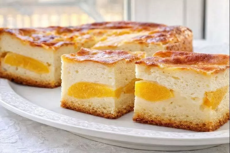 Этот замечательный пирог порадует вас и ваших близких своей нежной текстурой и ярким вкусом. Он состоит из заливного теста на сметане, сочной начинки из консервированных персиков и мягкого творожного слоя. Главное, что пирог отлично пропекается, оставаясь свежим и сочным даже на следующий день.