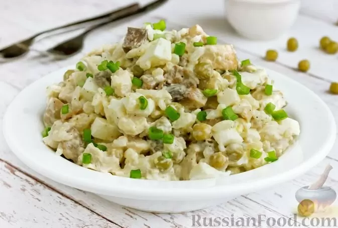 А что насчет краснокочанной капусты с колбасой и горошком? Это сытное угощение станет отличным перекусом, а салат с жареными шампиньонами, курицей и рисом идеально подходит для полноценного обеда.
