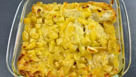 После того как яблоки станут мягкими, их нужно выложить поверх творожных рулетов. Затем отправить форму в разогретую до 180°С духовку на 30 минут. В результате получится невероятно аппетитный десерт!