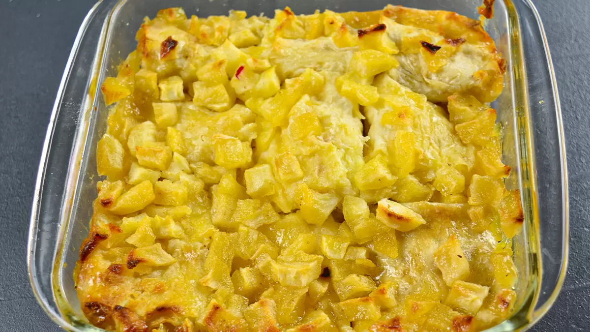 Подавайте творожно-яблочный десерт теплым. Чтобы добавить интересные нотки, можно использовать лимонную цедру или молотую корицу — это придаст блюду особую изюминку.