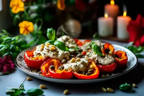 На столе зажгутся яркие краски и ароматы с появлением блюда, которое не оставит равнодушным никого. Сладкие болгарские перцы, запечённые до идеала, в сочетании с нежным тунцовым соусом создадут кулинарную симфонию, которая станет настоящим украшением любого праздничного застолья.