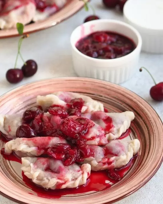 Готовые вареники следует варить в кипящей подсоленной воде. Как только они всплывут, варите еще 2–3 минуты. Подача горячих вареников к столу с вишневым соусом придаст блюду особый шарм.