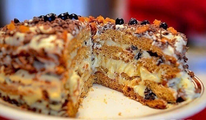 Украшение торта можно сделать на свой вкус, добавляя фрукты, ягоды или посыпая орехами. Этот торт не оставит равнодушным никого!