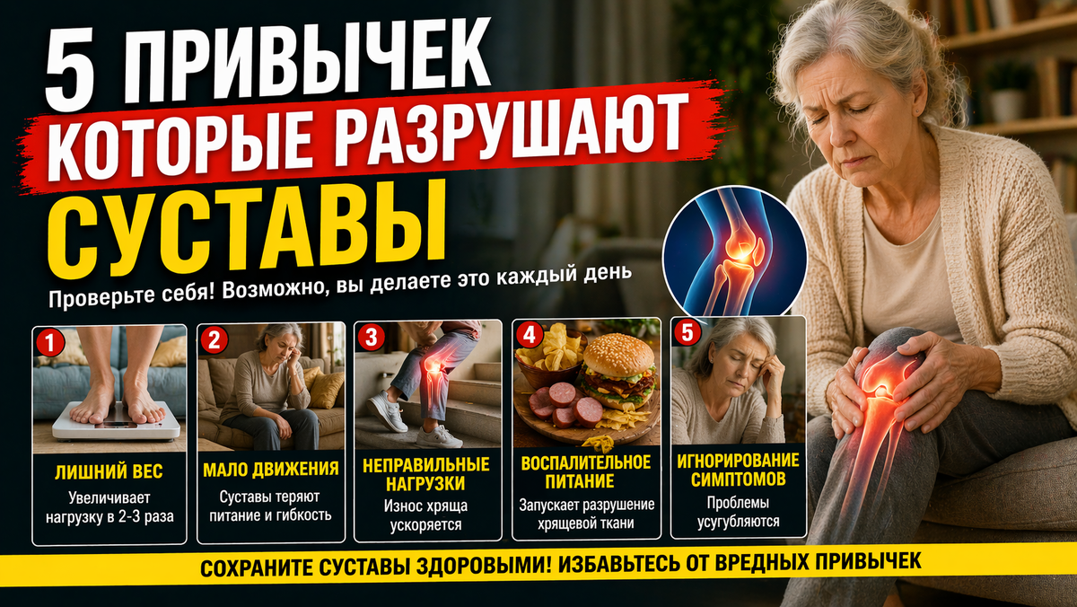 Суставы обычно не начинаются «ломаться» внезапно; этот процесс нередко растягивается на годы. Главная причина этого — не возраст, а повседневные привычки, которые большей частью кажутся вполне безобидными. Рассмотрим пять факторов, губительно влияющих на состояние суставов и приводящих к ломким ощущениям.