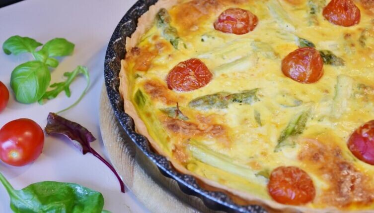 Затем половину теста нужно вылить в смазанную маслом форму, аккуратно выложить начинку и залить второй половиной теста. Выпекается пирог в разогретой до 180 градусов духовке в течение 20–25 минут.