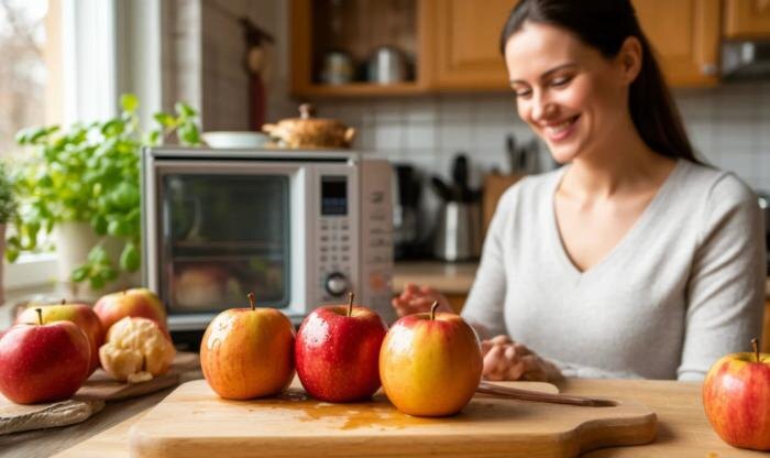 Секретом успешного десерта станет всего одноминутное приготовление, а именно запекание яблок в микроволновке. За считанные мгновения можно получить сладкое угощение, которое поразит даже искушённых гурманов. Подобный десерт напоминает бабушкину шарлотку, но готовится невероятно быстро и просто. Life.ru разделяет с читателями этот кулинарный лайфхак, превращая обычный плод в великолепное лакомство.