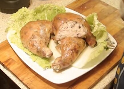 3. После этого кожу нужно снова вывернуть на лицевую сторону. Проделать эти манипуляции со всеми окорочками.