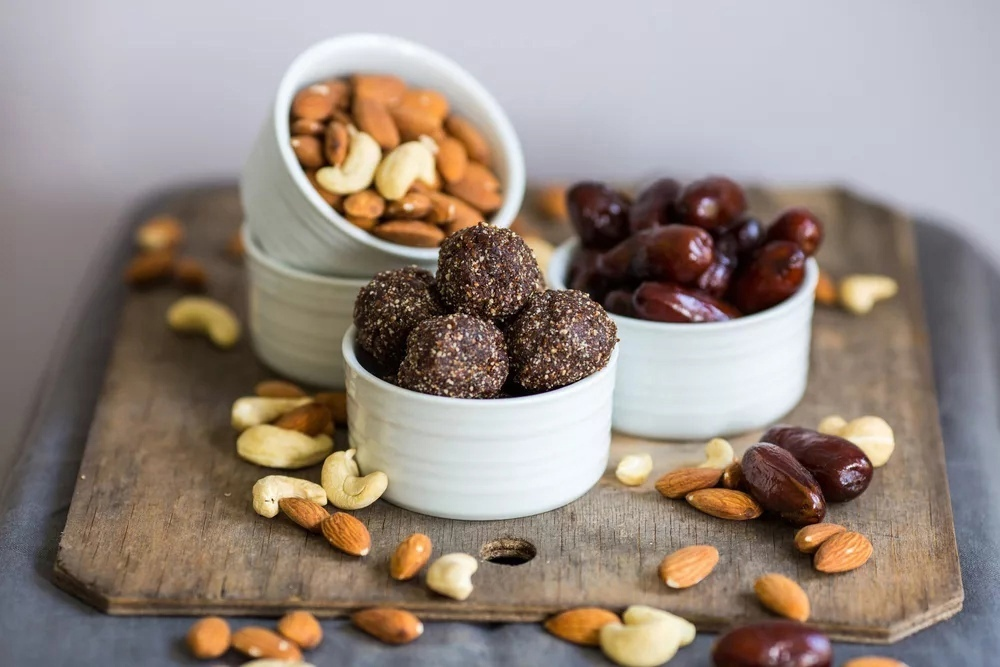 - Сухофрукты: Финики и курага — это сладкие, но высококалорийные продукты, поэтому стоит ограничить их потребление до 30-40 граммов в день.