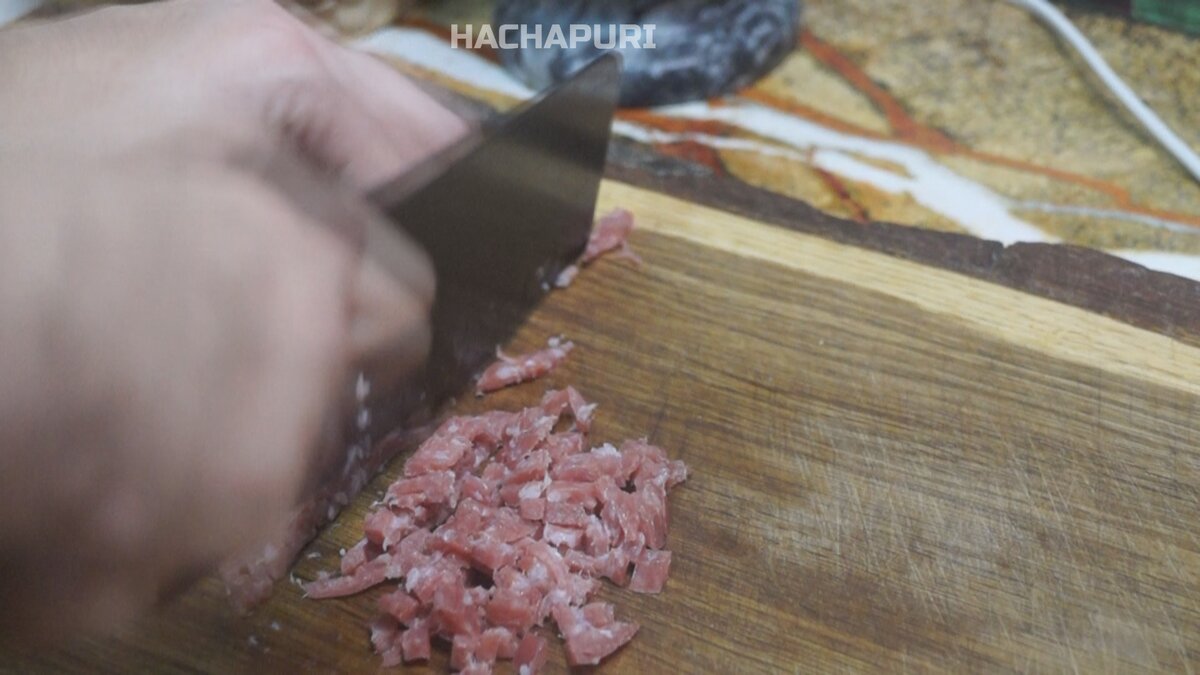Приготовление закуски начинается с нарезки колбасы кубиками. Для этого подойдут как ветчина, так и докторская колбаса — последний вариант значительно упростит процесс, ведь можно использовать терку.