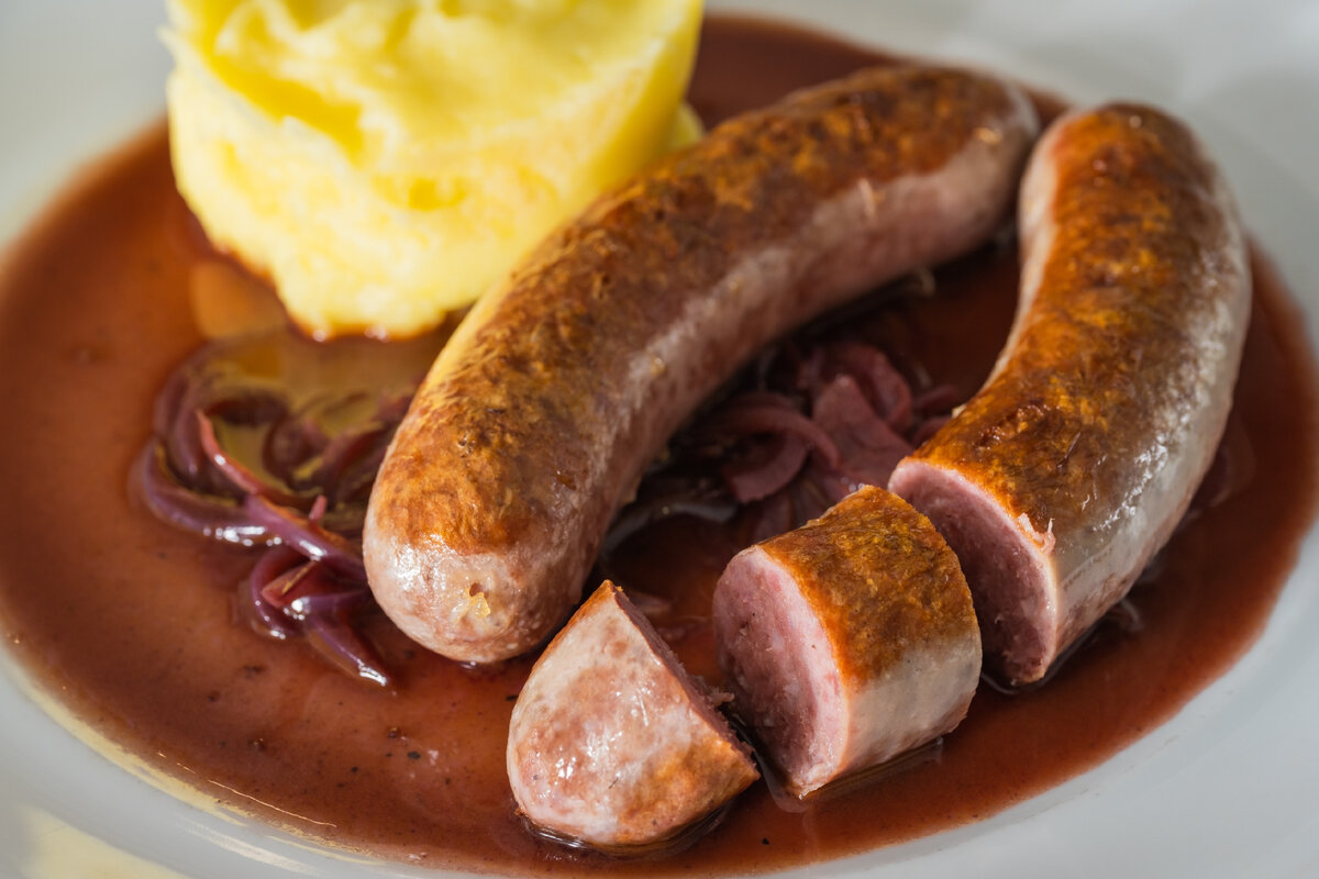 Как приготовить колбаски с винно-луковым соусом?
