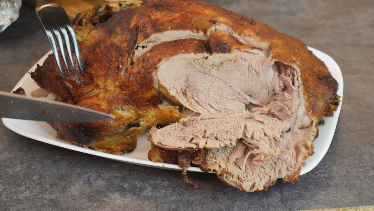 Подавайте птицу, нарезав на порции и добавив начинку. Это простой, но эффективный способ получить на праздничный стол сочное мясо и хрустящую кожу, которое обязательно понравится вашим близким.