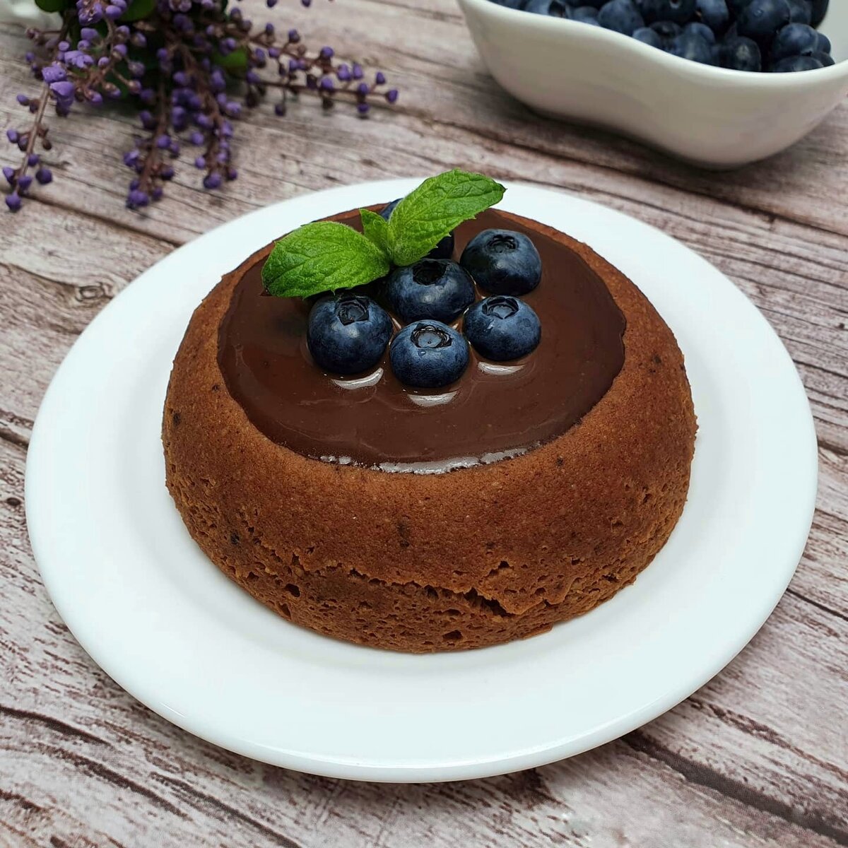 5. После окончания приготовления аккуратно перевернуть кекс на тарелку и немного охладить. По желанию, его можно покрыть шоколадной глазурью: растопить 5 г горького шоколада с 10 мл молока в микроволновке или на водяной бане, а затем полить сверху кекс.