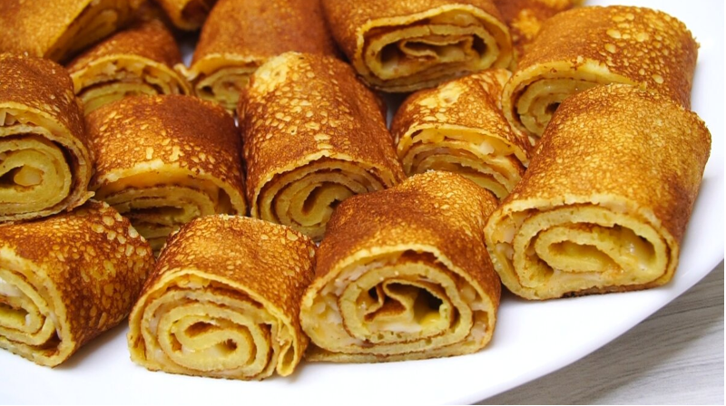 На каждую блинчик можно посыпать начинку, сворачивая их в рулеты. Получившиеся кусочки можно подавать к столу с любимыми соусами или просто так. Приятного аппетита!
