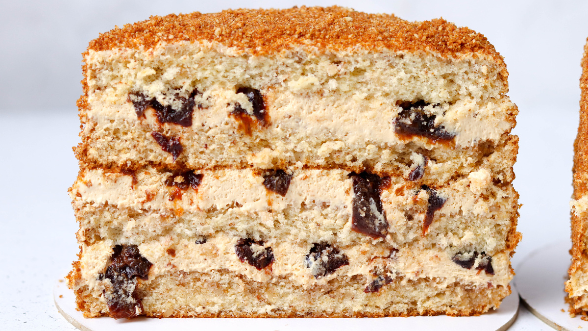 Этот медовик станет настоящим украшением любого стола! Сочетание бисквитного теста с неповторимым сырно-сметанным кремом на основе варёной сгущенки и изысканным черносливом, пропитанным ароматным настоем, подарит истинное кулинарное наслаждение.