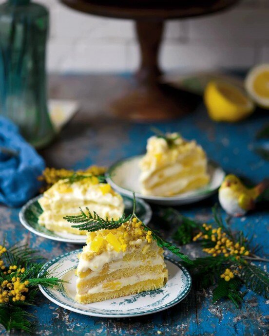 Бисквит: Взбейте яйца с 150 г сахара, оставшейся ванилью и щепоткой соли до пышного состояния. Аккуратно введите 135 г муки с помощью лопатки. Выложите тесто в подготовленные формы и выпекайте при 180°C около 15 минут. Охладите и нарежьте на 4 коржа.