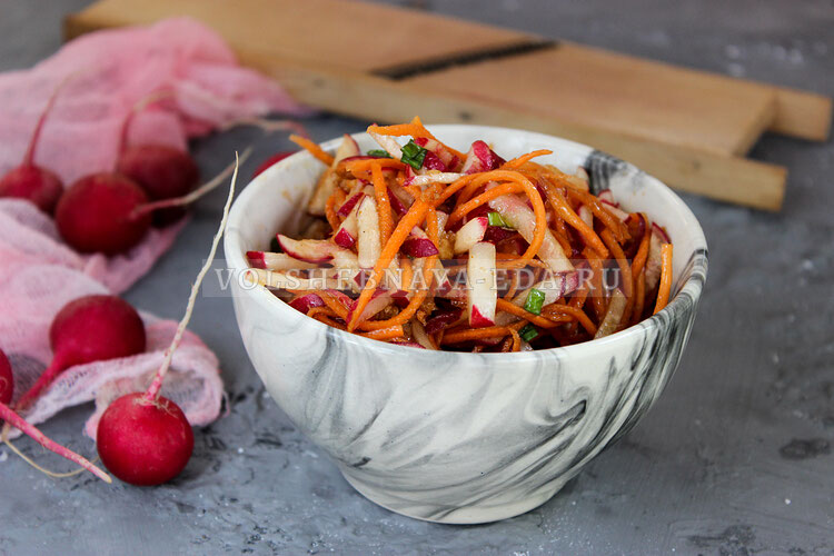 Салат из моркови и редиса, известный своим оригинальным вкусом и ярким цветом, становится все более популярным. Он может спровоцировать яркие чувства даже у самых искушенных гурманов. Эта простая, но эффектная закуска готовится быстро, и при этом требует минимально затратных ингредиентов.