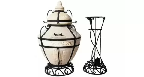 Переносной тандыр "Аладдин" является настоящим произведением кулинарного искусства. Изготовленный из светлой термостойкой шамотной глины и выполненный в форме амфоры, этот тандыр оптимально распределяет тепло, позволяя пище равномерно прогреваться. Блюда сохраняют свою сочность и полезные свойства, а толстые стенки тандыра обеспечивают долгое удержание тепла. Благодаря данному устройству можно эффективно готовить несколько блюд одновременно. Широкая горловина делает его идеальным для выпекания лепешек и размещения объемного казана, а вертикальная загрузка позволяет без труда запекать шашлыки и бараньи ноги.