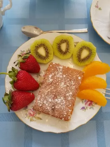 Когда творожная запеканка будет готова, её следует посыпать сахарной пудрой и украсить? фруктами, такими как клубника, апельсины и киви. Этот десерт не только вкусен, но и выглядит невероятно аппетитно, что делает его идеальным для любого стола!