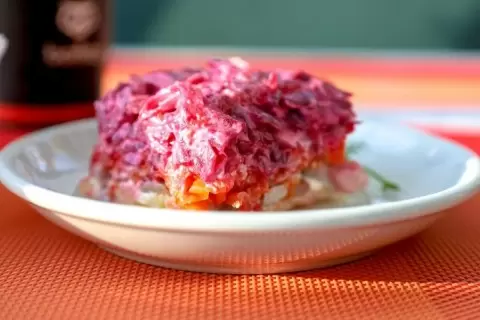 На дно кладут картофель, слегка прижимая и смазывая майонезом, затем идёт слой сельди, лука, снова майонез и повторение по мере наслоя. Свёкла добавляет верхний тон — её натирают крупно, чтобы увидеть контраст и почувствовать сладость на фоне солёной рыбы. Легкий щепот сладости сверху помогает слоям «завязаться» вместе.