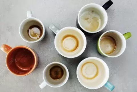 Кофейный налет образуется в результате взаимодействия масел и танинов, содержащихся в кофе. Эти соединения оседают на стенках кружки, особенно на пористых поверхностях, таких как керамика или фаянс. Чашки с трещинами или царапинами страдают от налета больше всего, поскольку кофе проникает в их маленькие повреждения. Но даже качественный фарфор и стекло не застрахованы от появления бурых полос.