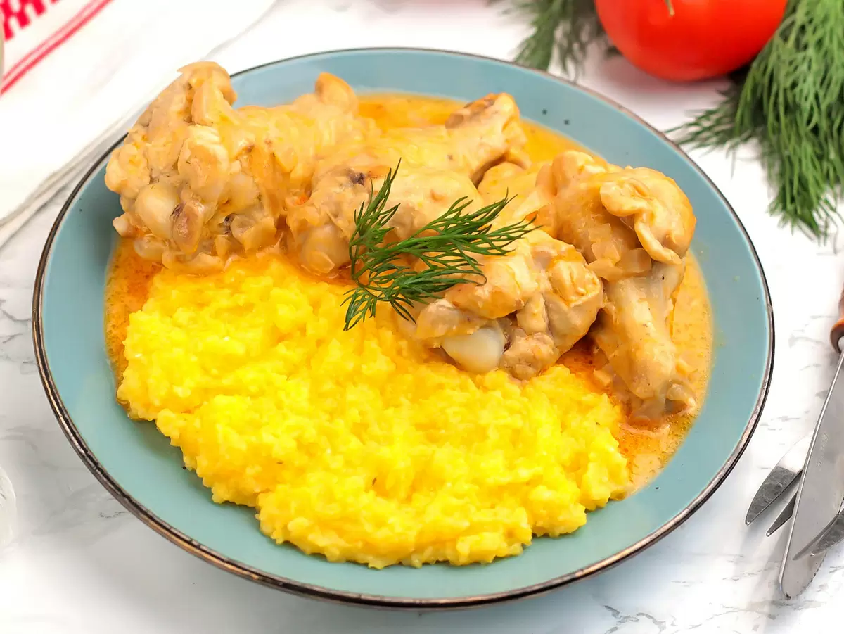 Готовые куриные плечики подают горячими с любым гарниром, а подлива должна быть однородной и притягательной.