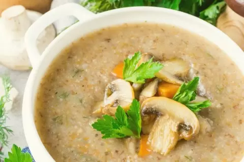 Классическое сочетание курицы и грибов становится еще более ярким, если добавить в него гречку. Такой суп не только вкусный, но и насыщенный, с характерным «русским» акцентом.
