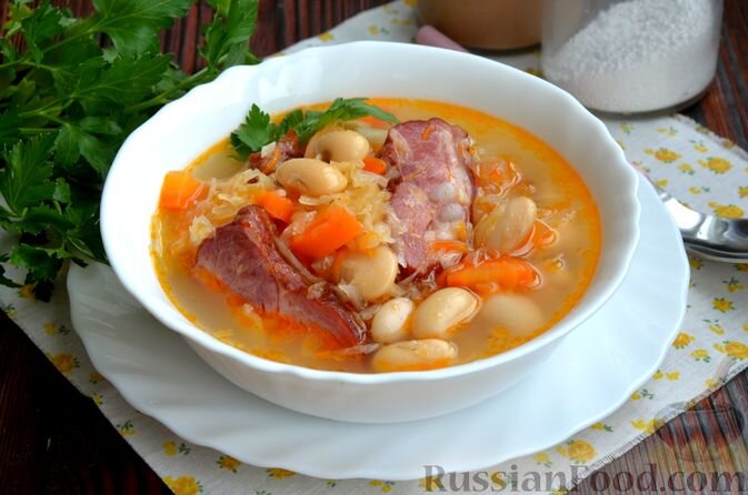 Заганянка – это сытный суп с копчёными рёбрышками, квашеной капустой и консервированной фасолью. Такой суп становится настоящим кулинарным спасением в холодные дни, так как сочетание кислоты от капусты и копчёного мяса создает гармонию вкусов.