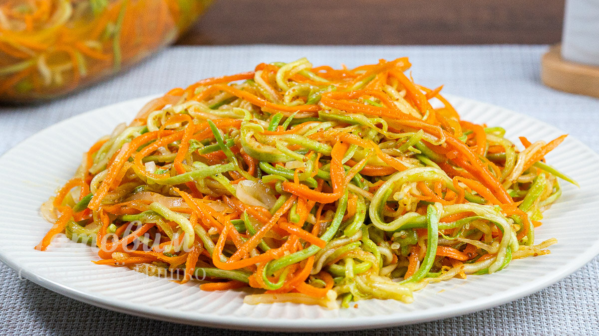 Эта закуска из кабачков и моркови по-корейски станет настоящим открытием для любителей простых и быстрых рецептов. Уникальное сочетание овощей не только прекрасно освежает, но и сулят восхитительный вкус на любой стол. Закуска легко заменит обычный овощной салат, а с мясными блюдами, приготовленными на мангале, станет идеальным дополнением. Воспользуйтесь рецептом, чтобы создавать праздничное настроение в обычный день.
