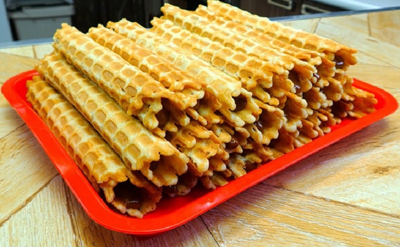 Хотя вафли великолепны сами по себе, можно добавить интересные акценты, наполненные заварным кремом, сгущёнкой или шоколадом. На праздничный стол подойдут вафли с кремом из масла и сгущёнки, дополненные орехами и ягодами. Они отлично сочетаются с чаем, кофе или прохладительными напитками в жару.