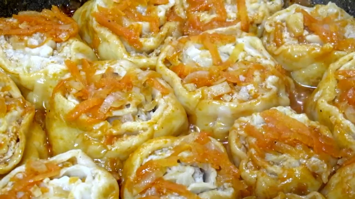 Существует несколько этапов формирования пельменей: из теста формируется прямоугольный пласт, который затем заполняется фаршем, заворачивается в рулет и разрезается на небольшие кусочки. Эти кусочки выкладываются в соус и готовятся под крышкой на среднем огне до готовности. Процесс занимает всего 25 минут, и в итоге получается сытное и ароматное блюдо, которым можно быстро накормить всю семью.